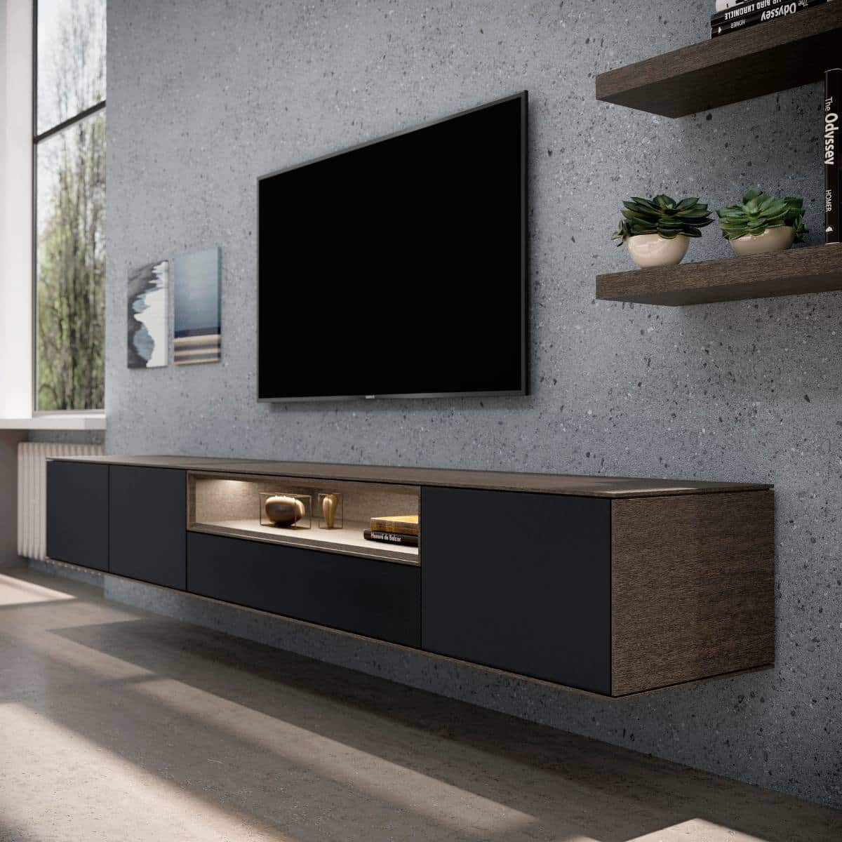 Het modulaire systeem van NRYO maakt het mogelijk om eindeloos te combineren. Je kunt hierdoor jouw unieke, eigen tv-meubel samenstellen. NYRO is van het Belgische merk Saunaco, dat gelijk staat voor vakmanschap, het gebruik van innovatieve materialen en prachtige designs. Je kunt tv-meubel NYRO ook upgraden met een geïntegreerd audio-systeem.