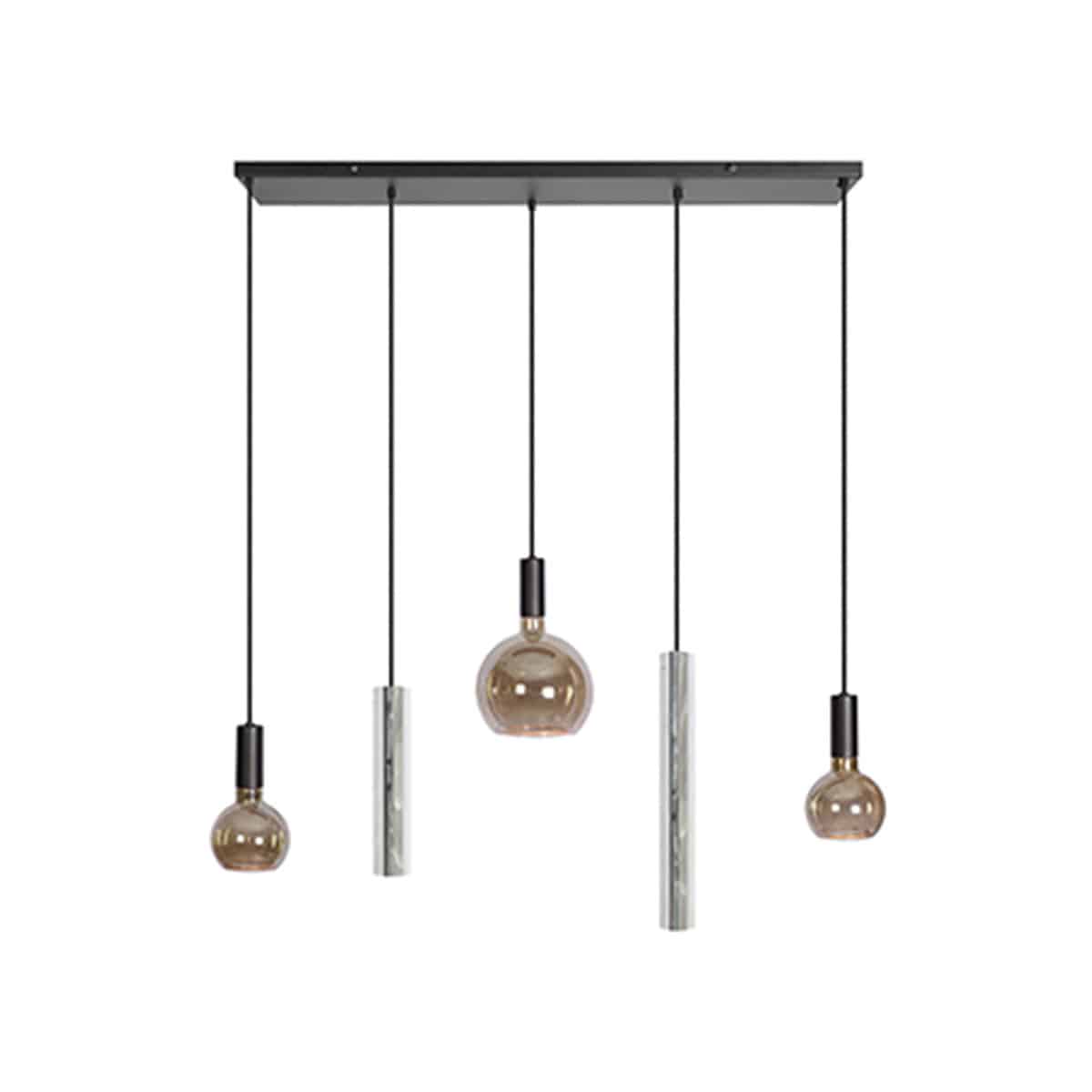 Design om van te genieten! Hanglamp Riva beschikt over een prachtige combinatie van verschillende vormen en materialen. Een perfecte blikvanger voor boven de eettafel met een mooie, sfeervolle verlichting. De bolvormige, glazen lampenkappen zijn voorzien van een lichtgevende rand. Een uniek detail met een wauw effect!