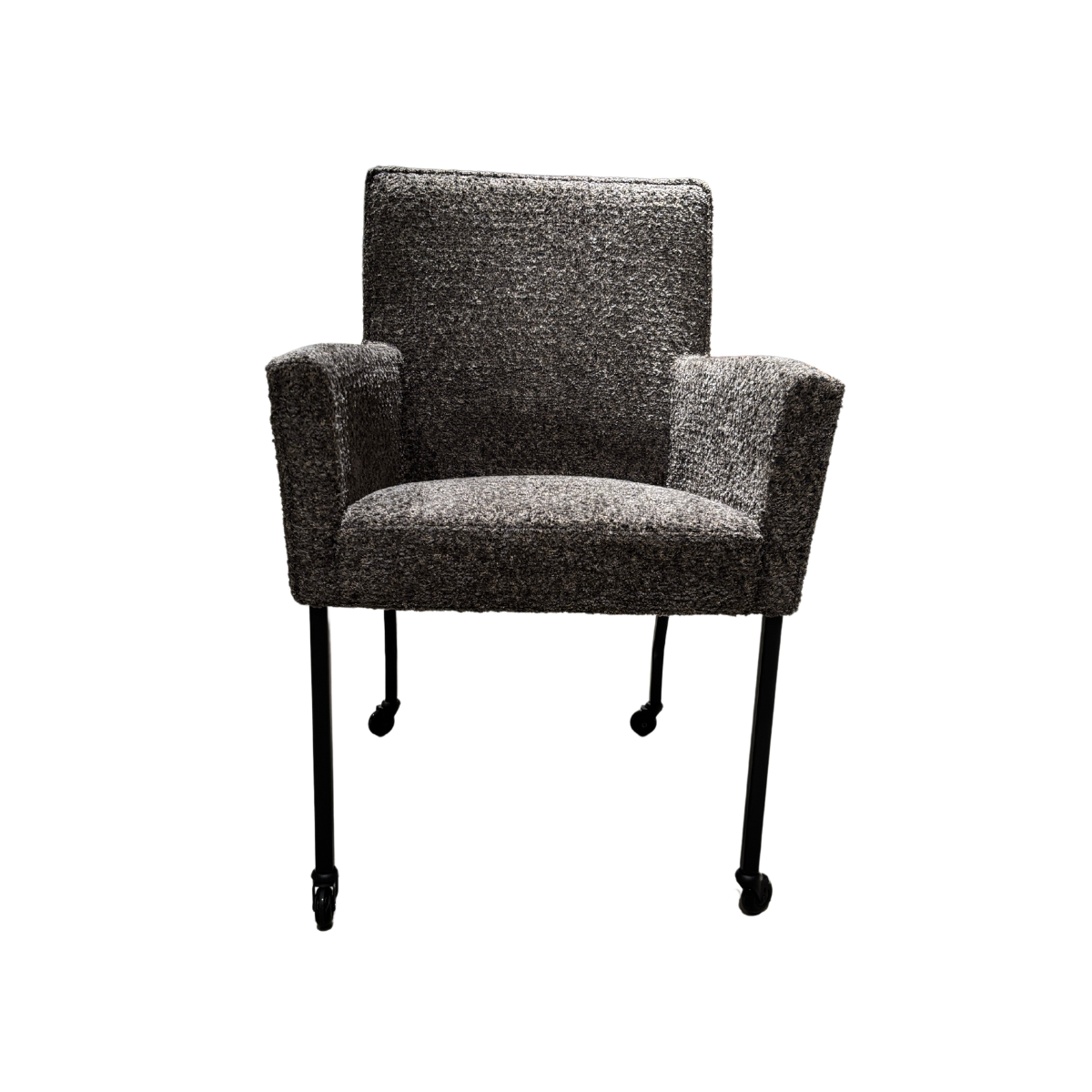 Eetkamerstoel Bas past perfect in jouw modern landelijke eethoek, maar is ook goed te combineren met een stoere inrichting of juist een modern interieur. Naast de looks is Bas ook een praktische eetkamerstoel met een armleuning en skatewielen. Ben je op zoek naar een iets compacter stoel? Eetkamerstoel Bas is ook leverbaar zonder armleuning en naast de skatewielen kun je ook kiezen voor een rechte poot. Je maakt stoel Bas compleet met een stoffen of lederen bekleding naar keuze. Kom langs in onze showroom om Bas in het echt te ervaren. Onze adviseurs laten je dan graag alle mogelijkheden zien.