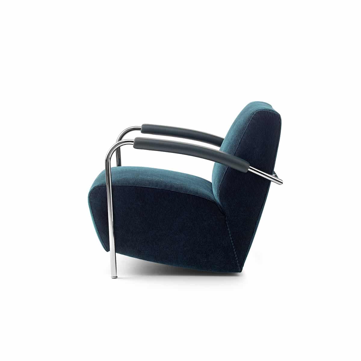 Fauteuil Scylla is leverbaar met zowel een lage als hoge rug en er zijn vele mogelijkheden voor de bekleding. Zo kunnen de binnen- en buitenzijde van de stoel apart bekleed worden en is er een keuze in zowel stof als leer.
