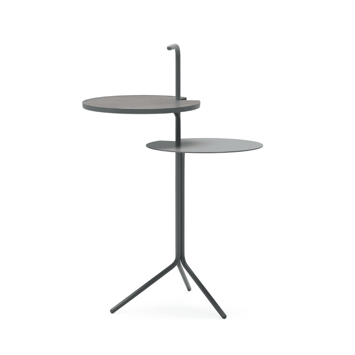 Bijzettafel Oo-Two van Design on Stock heeft een uniek ontwerp met twee tafelbladen op verschillende hoogtes. Het bovenste ronde tafelblad heeft een toplaag van houtfineer. Door het handvat verplaats je bijzettafel Oo-Two eenvoudig in huis. Van de woonkamer naar de leeshoek en weer terug. Oo-Two is ontworpen door Studio Tom Dissel.