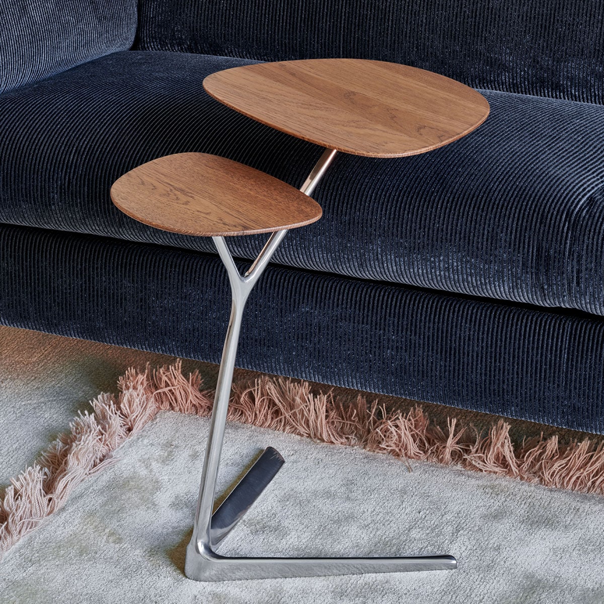 Deze bijzettafel van Leolux is ontworpen door Patrick Belli en hij heeft niet alleen gedacht aan de fraaie uitstraling van dit ontwerp, maar ook over de praktische eigenschappen. Zo is er aan de onderzijde van het bovenste blad een handgreep bevestigd, waardoor je het tafeltje eenvoudig kan verplaatsen. Bovendien is de hoogte van bijzettafel Portella afgestemd op de banken van dit merk en daardoor kan je dit tafeltje perfect over de bank heen schuiven. Erg handig!