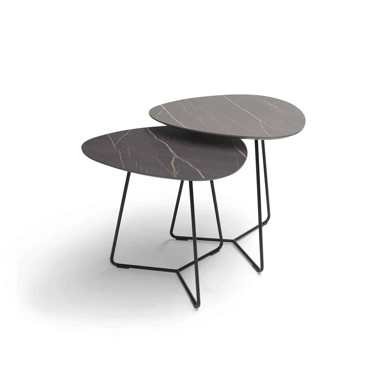 Sem is een moderne set bijzettafels met een industriële look. De tafelbladen zijn precies even groot en zijn dan ook onderling uit te wisselen, mocht u de hoge of lage tafel uit deze set toch liever in de andere kleur willen. De eivormige tafelbladen liggen op een subtiel, metalen frame dat zowel in RVS of zwart epoxy uit te voeren is.