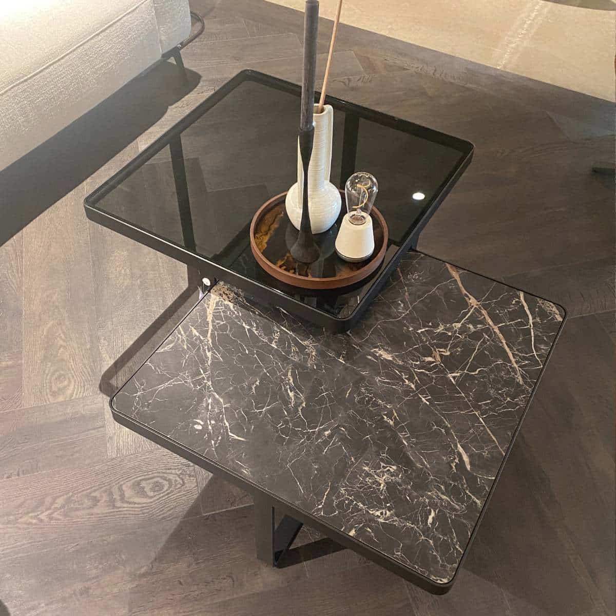 Bijzettafel Verona is perfect te combineren in verschillende woonstijlen. De bijzettafel heeft een eigentijdse vorm en kan je volledig naar eigen wens personaliseren. Het massief stalen frame kan namelijk in verschillende kleuren afgewerkt worden. Voor het blad van de bijzettafel heb je ook verschillende opties: keramiek, rookglas (grijs of brons) of een kunstleren print met helder glas. Met verschillende afmetingen en hoogtes creëer je een speelse set. Wil je de mogelijkheden in onze showroom bekijken? Kom langs om bijzettafel Verona in het echt te bewonderen.