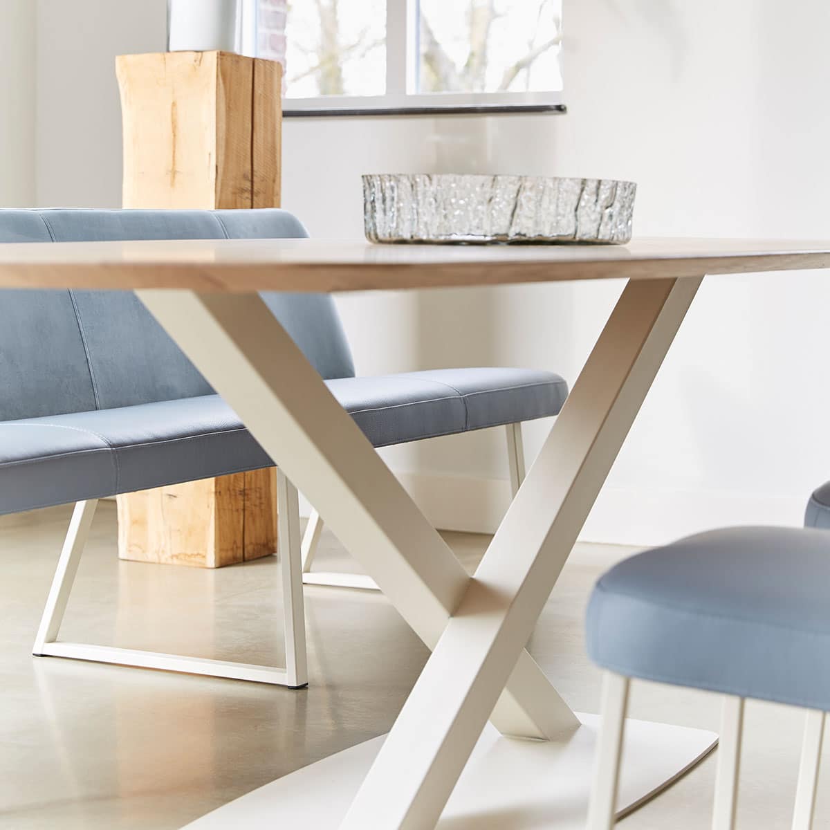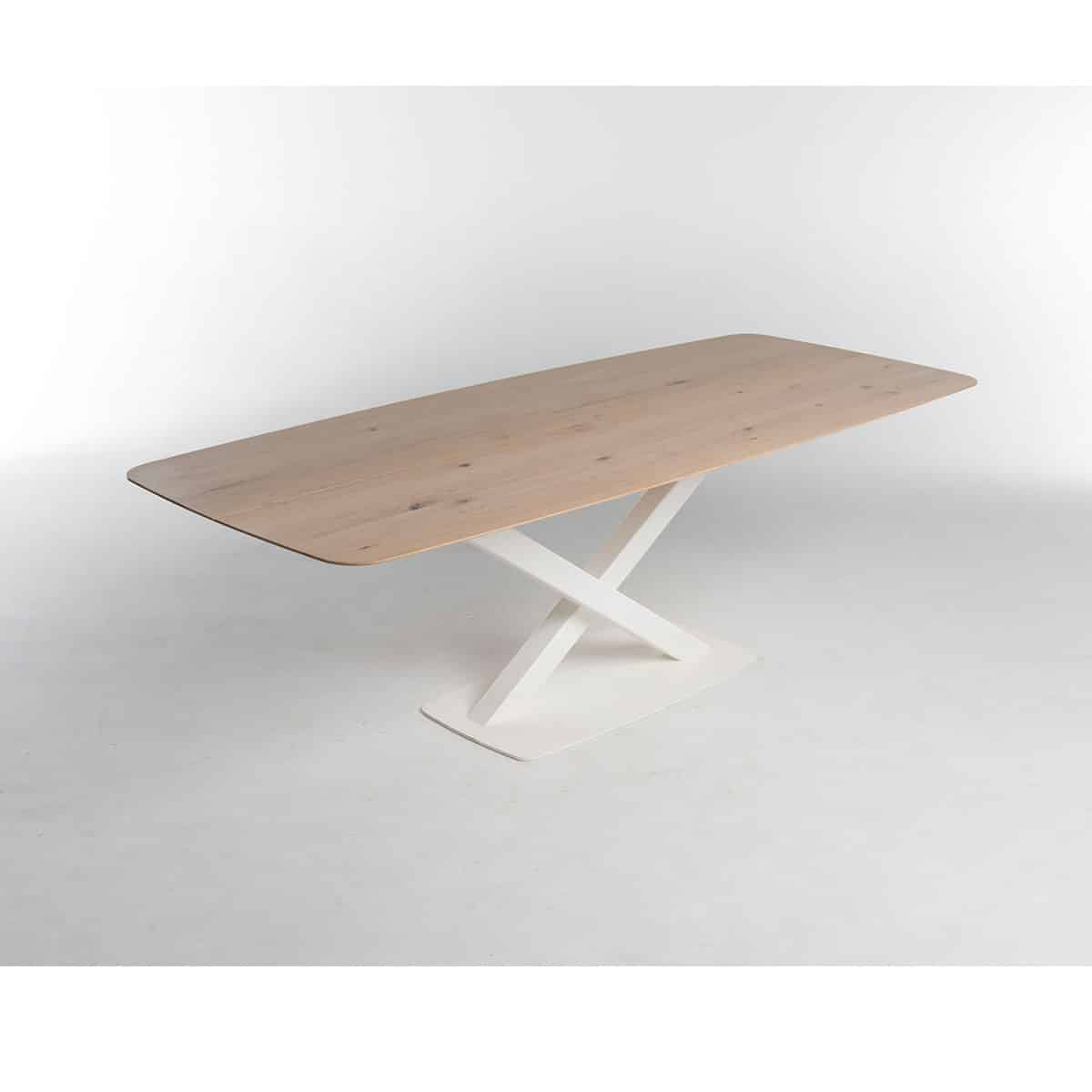 Een eettafel met een stoer karakter. Zo kunnen we eettafel Oxxi van Bert Plantagie het beste omschrijven. Dat zie je terug aan de royale X-poot en de noesten die nog zichtbaar zijn in het hout. Hierdoor ontstaat er een natuurlijke uitstraling. Het slanke tafelblad zorgt hierbij voor een mooi contrast.